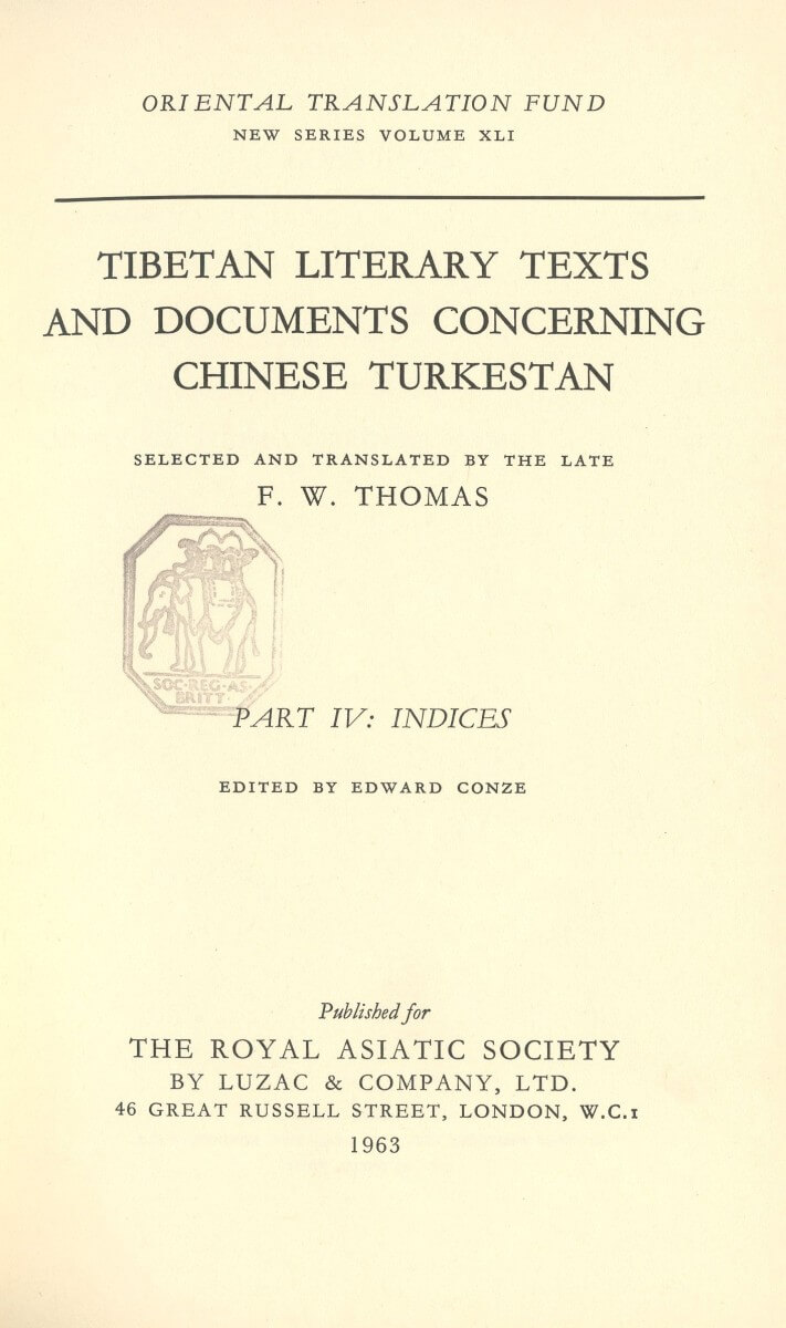Tibetan Literary Texts and Documents Concerning Chinese Turkistan: Volume 4: Addenda and Corrigenda
