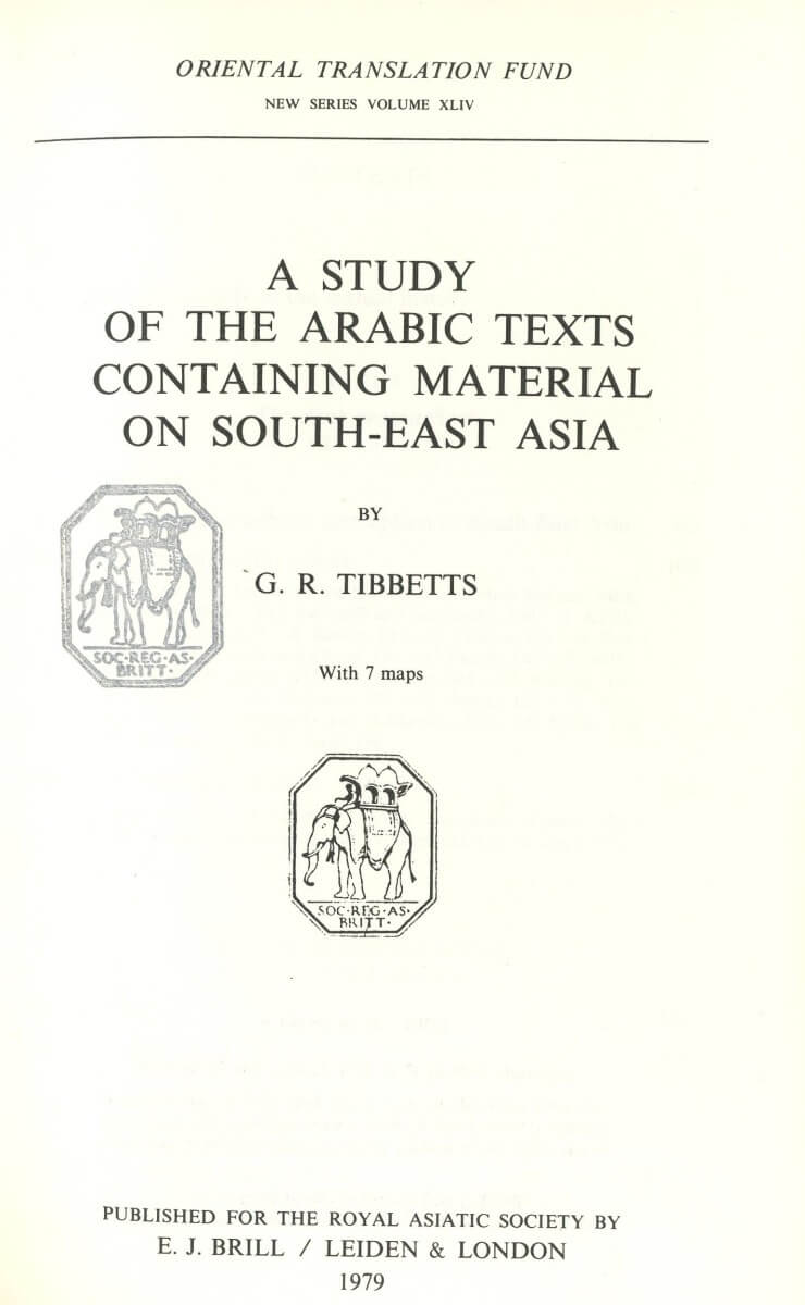 A Study of the Arabic Texts Containing Material on South-East Asia