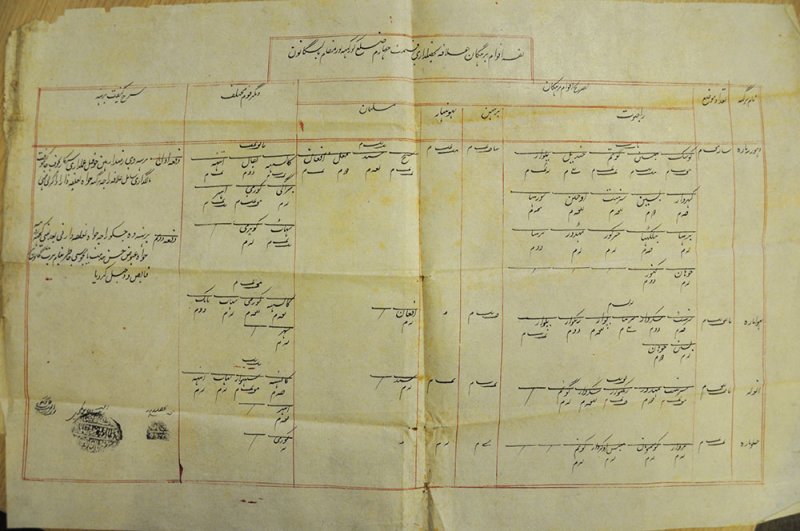 During Elliot’s time in India he held a number of positions, the most notable being in the revenue department. In this role, he collected valuable research on local castes, customs and zamindars (local landowners and tax collectors), which helped in the East India Company’s inheritance of a Mughal system of revenue collection. There are large amounts of manuscripts relating to this work, most which are likely in either Persian or Urdu, and are characterised by official stamps in Arabic scripts and tables drawn in red ink.