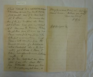 I am currently listing all the Personal Papers of Brian Houghton Hodgson ready for their entry on Archives Hub. The material has been partly catalogued before and I am keeping approximately to the order that was established previously but have already discovered some more correspondence that has needed to be slotted in amongst those already listed. This week I finished listing the correspondence – over 400 items, 200 of which are contained in an autograph book compiled by his second wife, Susan.