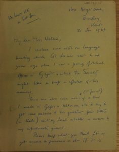 As the letter explains he enclosed some notes on language hunting which Col. Lorimer had sent him as a young political officer in Gilgit, and some further notes that Carter had made of a tour in Gupis & Ishkoman. And the series containsf correspondence from David Lorimer to Carter and also information from the investigation that Carter undertook to aid Lorimer’s research.