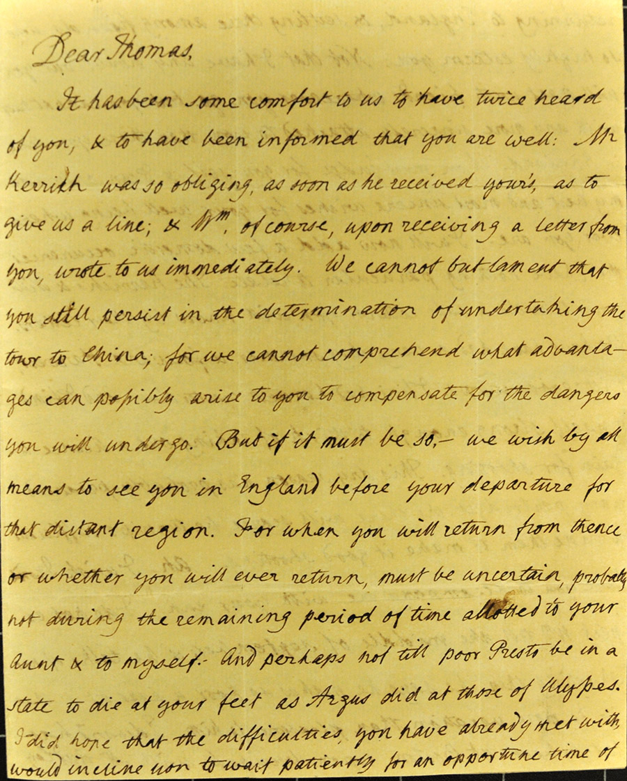 ![Letter from Thomas Manning’s father, Rev William Manning, expressing his concern regarding Manning’s proposed travel to China, [24 August 1803] (TM/1/1/27)](jpg/manning-2.jpg)