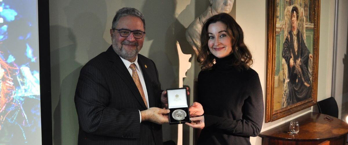 Amid warm applause, Dr James Busuttil himself presented the prize medal to Dr Fuchs. The medal bears the Society’s elephant emblem on one side, while the other shows Dr Busuttil’s coat of arms depicting a sword breaking through chains, a vivid symbol of resistance against oppression.