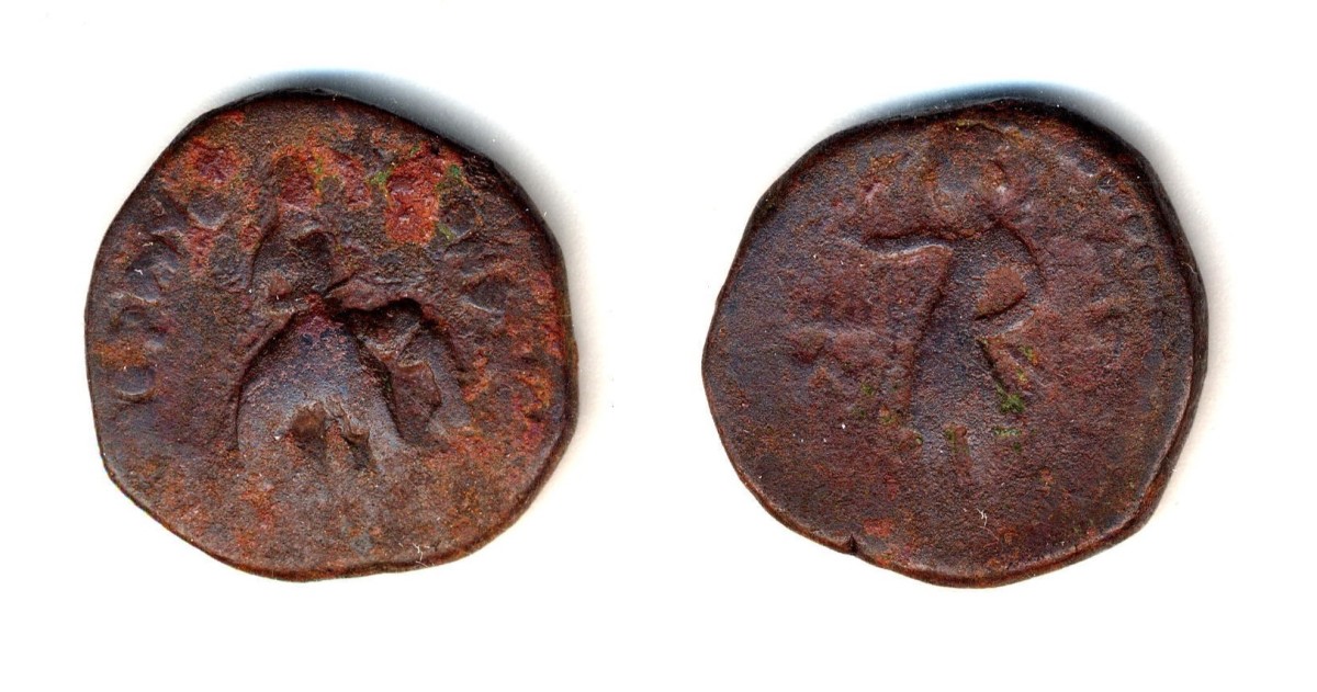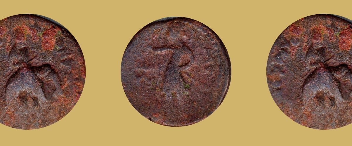 There are some 1,200 coins in the collection, originating from a wide range of geographical regions and historical periods. The earliest specimens from the collection are the ancient Indian punch-marked coins, typically made of copper and dating to the 1st century BC (RAS Coins.09). According to Dr Khan, the most impressive and varied coins of the collection is composed of the Kushan period coins (RAS Coins.01, 02, 03, 04, 05, 06 and 07). The selection almost gives a complete sequence of the Kushan rulers with wide variation in their coin types, especially of Kanishka I (r. 127-150 AD) and Huvishka (r. 150-190 AD). These coins often depict the king in various postures on one side, and mythological and religious figures on the other.