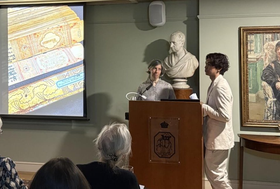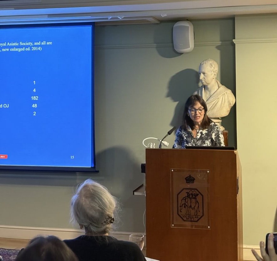 Dr Alexandra Green and Thaw Zin Latt, from the British Museum, focused on the Burmese manuscripts in the RAS collection. In her presentation Dr Alexandra Green looked at the details surrounding the production of Burmese manuscripts, including the specificity of its dating convention as well as the intriguing origin of the endboards used in the manuscripts. Thaw Zin then drew our attention to the significance of Aṅguttaranikāya – Catukkanipāta (Burmese 64), a gilt, lacquered and beautifully decorated manuscript produced as a donation by King Pindale of Burma, who reigned from 1648 to 1661. This manuscript is the oldest dated palm leaf manuscript written in Pali in a European collection, making it an even more historically important object. This manuscript, along with our other Burmese manuscripts, is available for online viewing in our Digital Library. We hope this presentation will spark more research interest in the Society’s Burmese manuscript collection.