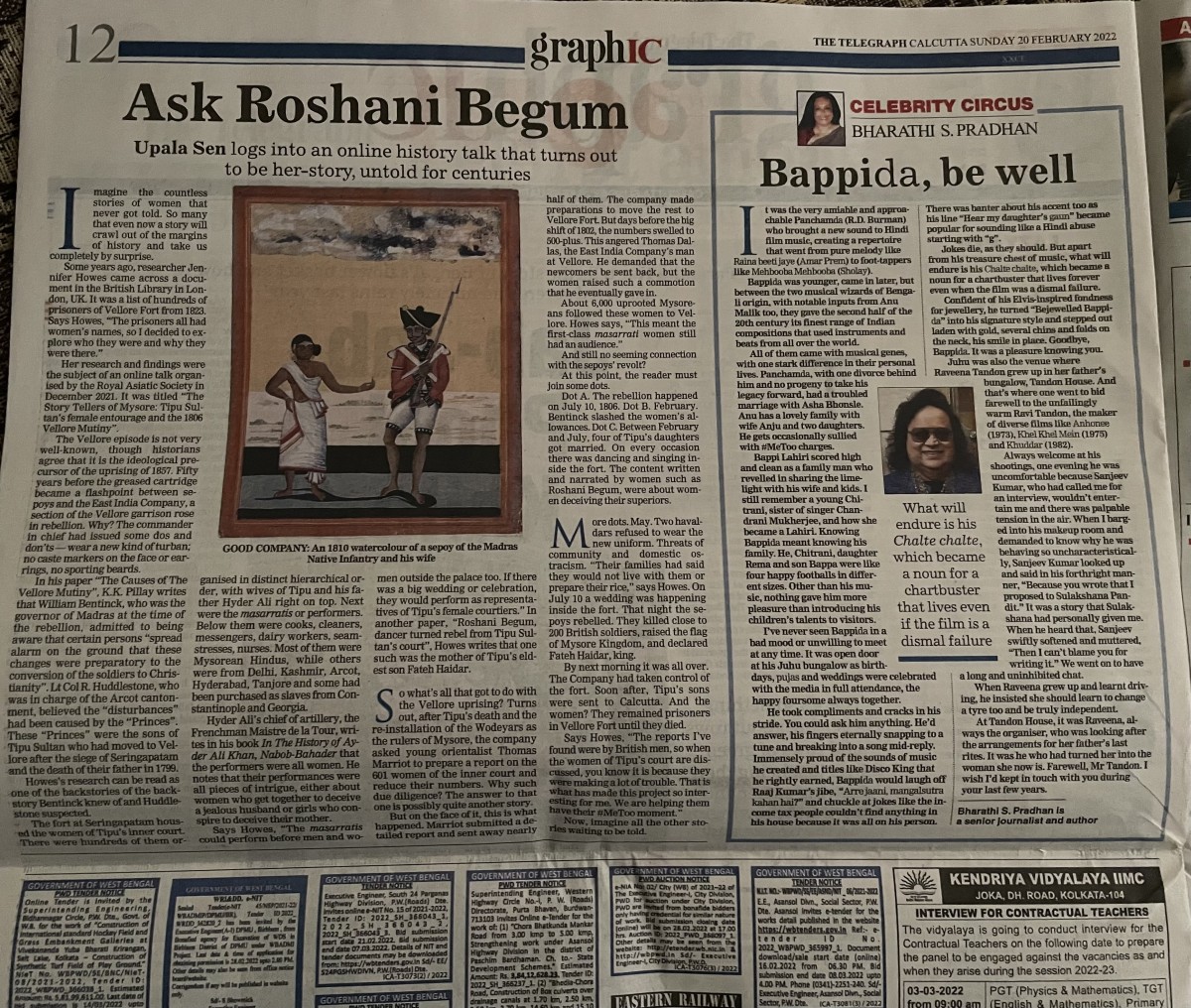 You can read the full article here: https://www.telegraphindia.com/culture/royal-asiatic-societys-online-talk-on-jennifer-howes-research-and-findings-of-the-story-of-tipu-sultans-female-entourage-untold-for-centuries/cid/1852623