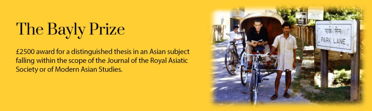 Please complete the application form BAYLY-PRIZE-APPLICATION-FORM-2022, and return by email with a PDF of your thesis to The Director, Alison Ohta, ao@royalasiaticsociety.org and The Events Officer Matty Bradley mb@royalasiaticsociety.org by Friday 15th April 2022.