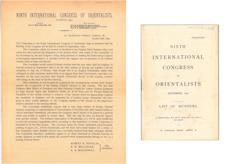 Some time ago, a researcher visited us to consult the papers of the International Congress of Orientalists held in our collections. Although these papers are classified as part of our institutional archives, they are external to the Society – meaning they were not produced through the Society’s own activities, but rather stem from our interactions with other learned societies and our engagement in the broader academic world.