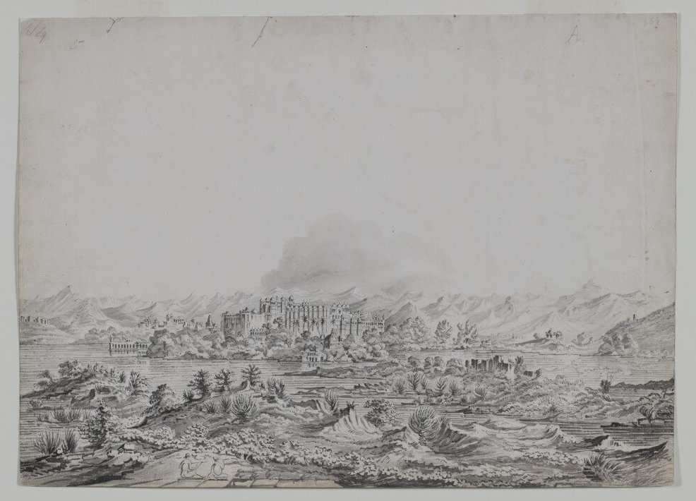 Little is known about Tod’s two cartographic assistants and further research on this topic awaits in the National Archives of India, where most of the correspondence and notebooks relating to Tod’s map making exercise are now located. However, other collaborative endeavours with Indian interlocutors under Tod’s direction are better known. Perhaps the most interesting and productive of these was the artistic collaboration between the Udaipur court artist Ghasi, who was seconded to Tod’s service while he was Political Agent, and Patrick Young Waugh (1788–1829), who was Tod’s subaltern.