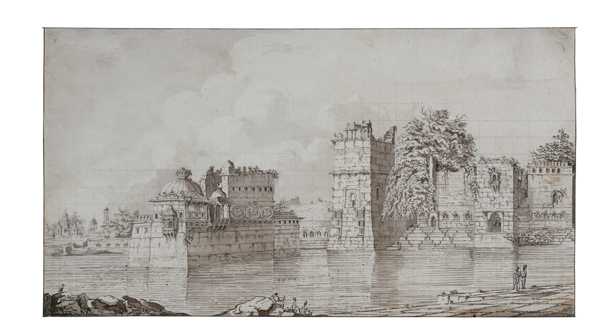 For his part, Ghasi was able to adapt his traditional Rajasthani training in the depiction of court and palace scenes at Udaipur to suit Tod’s desire to record the monuments of the region within the European sensibilities of technical drawing and architectural draftsmanship.