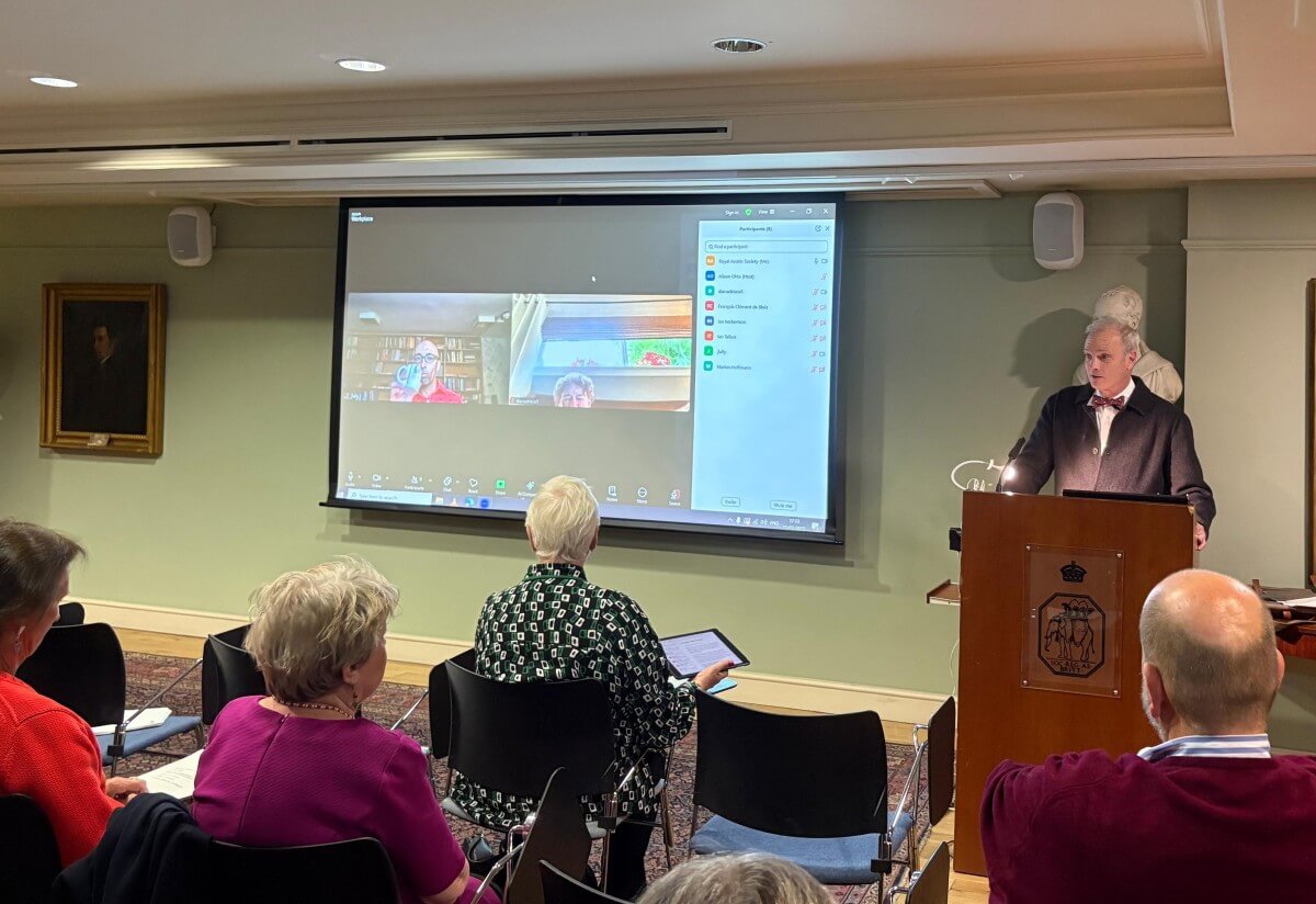 This year, the meeting was opened by the President, Dr Norbert Peabody, who asked the meeting participants to confirm the minutes of the last meeting. After this, the Treasurer, Elizabeth Robb, reported on the financial state of the Society. Following the Bicentenary activities which continued into 2024, expenditure and income of the Society have returned to normal levels, and the Society’s financial position remains sound.