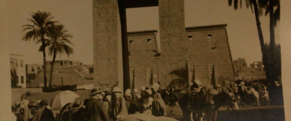 These photographs come from a set of originally 42 (sadly one is missing) Each is labelled which should aid their identification. The lower photo shows the Mortuary Temple of Hatshepsut at Thebes. The upper one is labelled ‘R.F. and H.S.F’. – so if I can identify those initials with members of a team, that should enable me to decide to which trip these photographs relate.