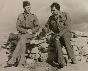The contact sheets and three of the larger photographs are labelled, the two above and a further one showing Mountbatten’s daughter, Pamela. The fourth is not labelled and doesn’t appear on the contact sheets either. It shows two people in army uniform chatting on a wall, so may in fact relate to Dorsett’s time in the army. If anyone can shed light on this image, I would be grateful…