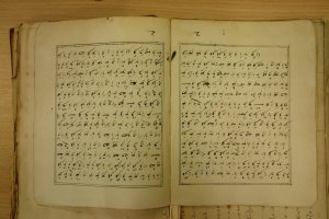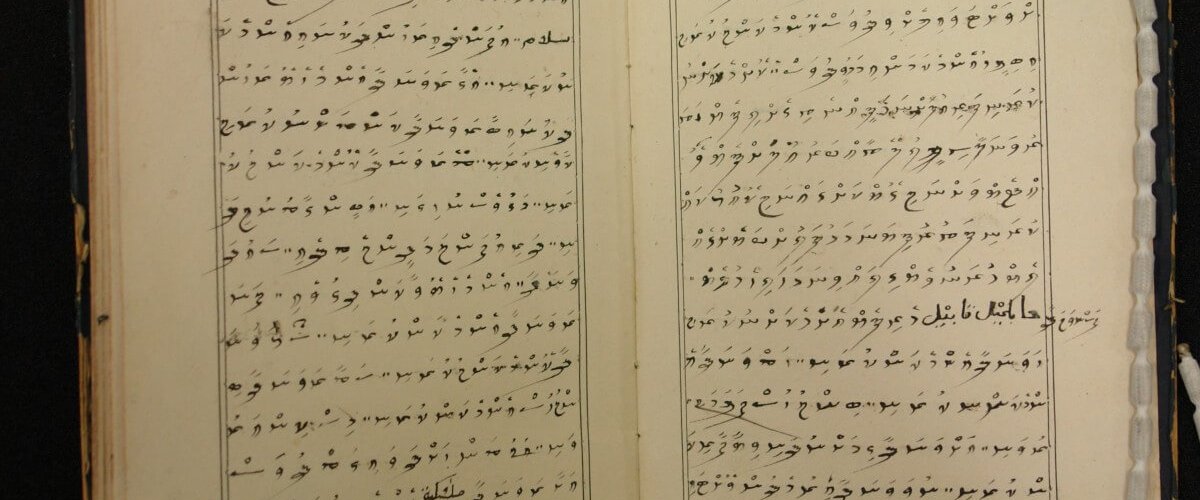 We also hold a single copy of a Maldivian manuscript which is a Maldivian Nakaiyterikaṅ (astrology) manuscript (SC 38). At the commencement of the manuscript it is titled in English, “Nek-ket Were-ingay foy which means our conjuring book”. This is followed by an explanation of its use, e.g. in consulting before undertaking a voyage. This copy was made in September 1817 by Nalle Tandy, a “Chitty man” who was the interpreter of the Maldivian language. The image at the top of the page shows part of the manuscript’s text which is read right to left. The catalogue entry for it can be found here.