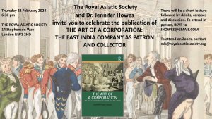 On Tuesday 20th February, 6.30 pm, Dr Neil Schmid from the Dunhuang Academy will lecture on King of Kings: Vestiges of Sasanian Sacral Kingship in 10th Century Dunhuang and on Thursday 22nd February, 6.30 pm, Dr Jennifer Howes will celebrate the publication of her book, The Art of a Corporation: The East India Company as Patron and Collector. Both are hybrid events and if you wish to attend via zoom, please contact Matty Bradley (mb@royalasiaticsociety.org). If you wish to attend Jennifer Howes’ event in-person, please let her know at: jhowes@gmail.com