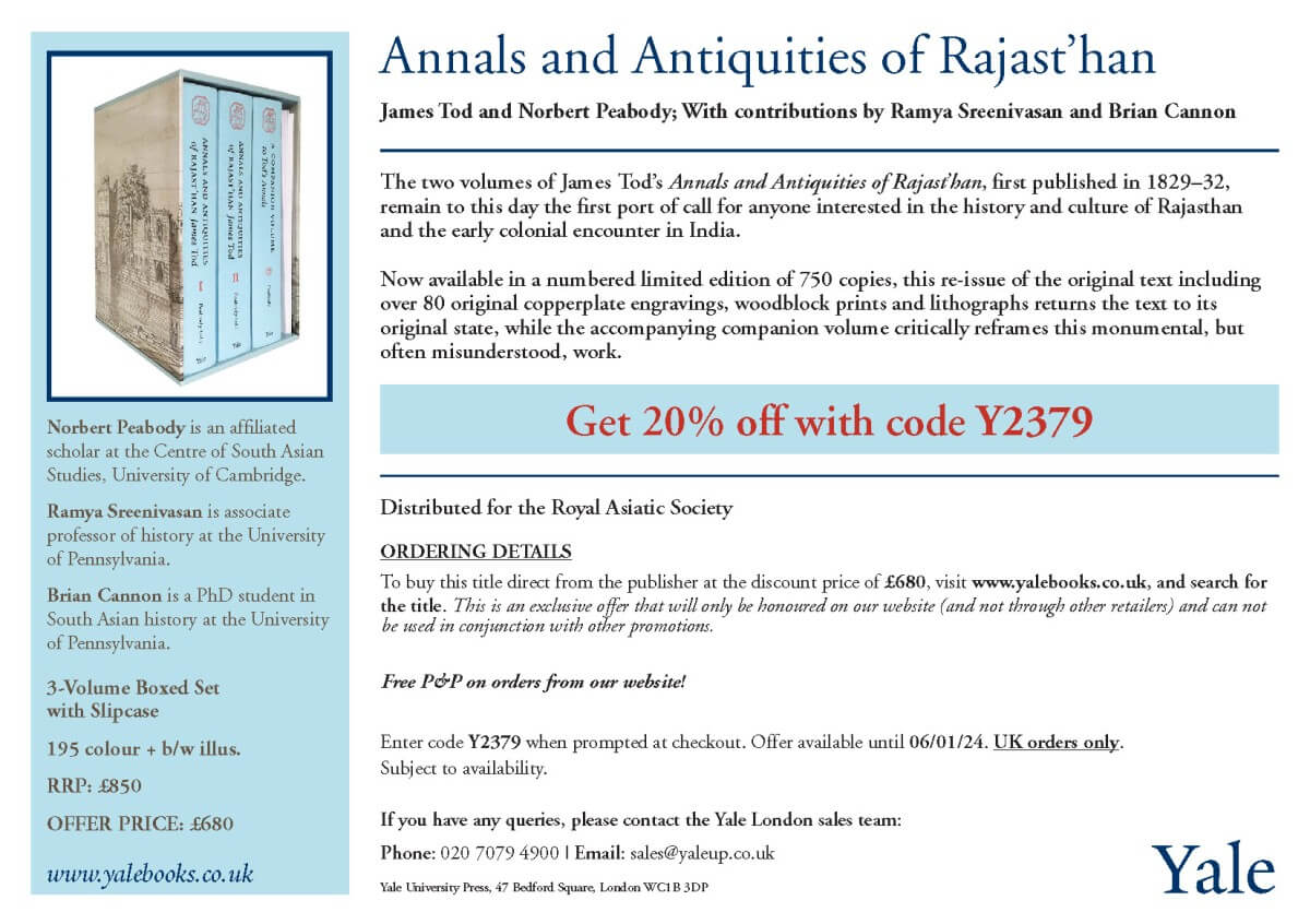 On Wednesday the Society launched its three volume reissue of James Tod’s Annals and Antiquities of Rajast’han at the Brunei Gallery, with Maharaj Kumar Sahib Dr Lakshyaraj Singh Mewar of Udaipur in attendance. We will post a full rundown of the event in a future blogpost, for now we hope you will enjoy this recording of Dr Norbert Peabody’s talk which opened proceedings at the the launch.