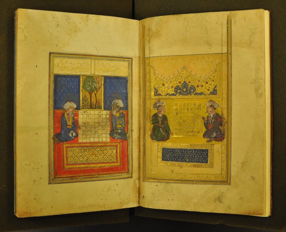 One of the more fascinating objects that is on display at the Royal Asiatic Society’s Extraordinary Endeavours: Celebrating 200 years of Communication, Collaboration and Dissemination exhibition is an early 15th century manuscript by the name of Risāla i-Shaṭranj (Chess Treatise). This beautiful manuscript, catalogued as Persian 211, includes information on the benefits of chess as well as 64 diagrams of chess problems. It also attributes the origins of the game to India, a statement that has historically caused much debate.