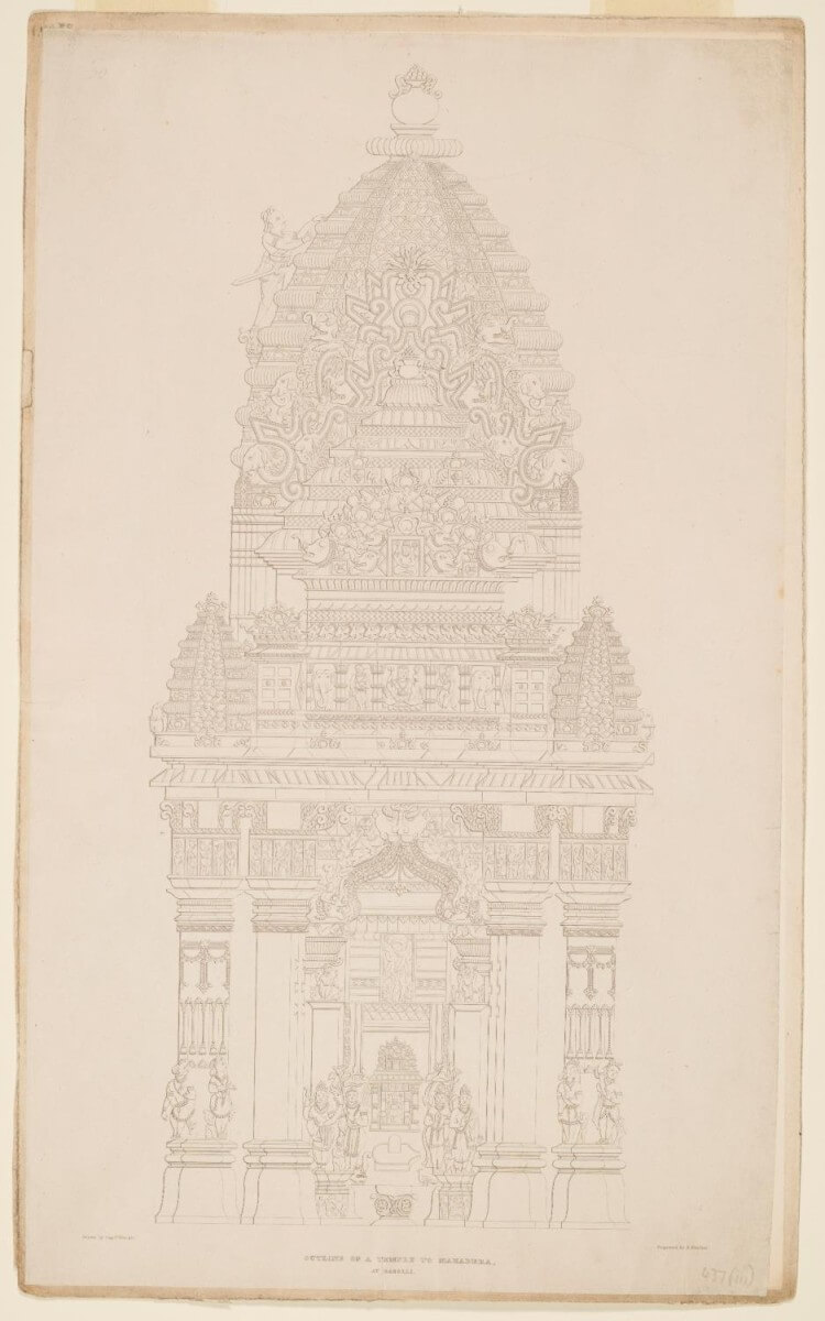 “Art seems here to have exhausted itself, and we were, perhaps for the first time, fully impressed with the beauty of Hindu sculpture. The columns, the ceilings, the external roofing, where each stone presents a miniature temple, one rising over another, until crowned by the urn like kalas…”