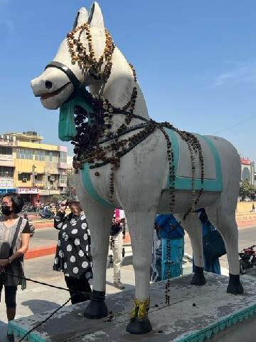 Astonishingly the statue of the horse is still there, at the side of a dual carriageway and overshadowed by one of the great roundabouts which are being built all over Kotah.