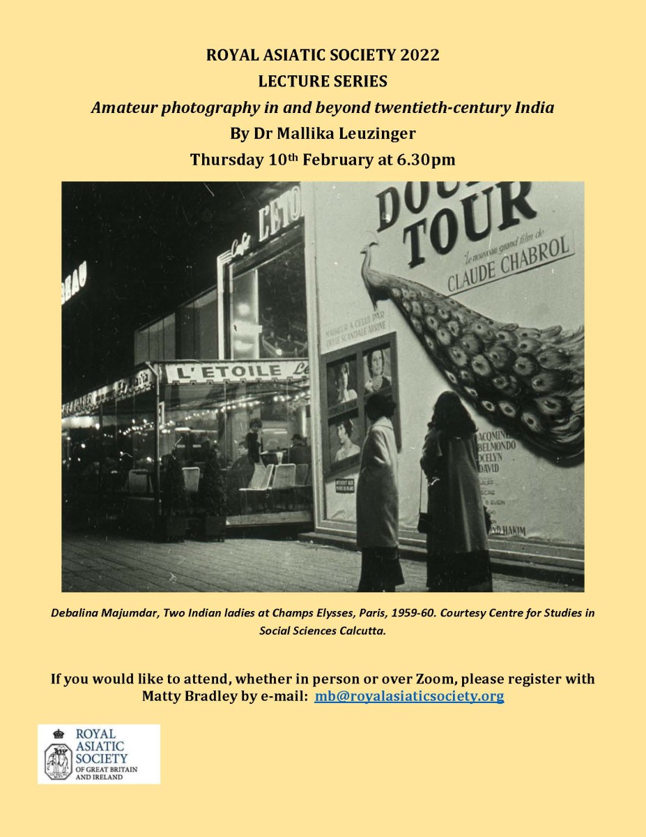 Please join us at 6.30pm on Thursday February 10th for a hybrid lecture by Dr Mallika Leuzinger entitled Amateur photography in and beyond twentieth-century India.