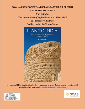 Next Friday evening (3rd December) at 6.30pm, the Society will be holding a hybrid book launch for Professor Alka Patel’s publication ‘Iran to India: The Shansabānīs of Afghanistan, c. 1145-1190 CE’. This will be a joint event with the Islamic Art Circle. To register, please email mb@royalasiaticsociety.org stating your preference for attending in-person or virtually.