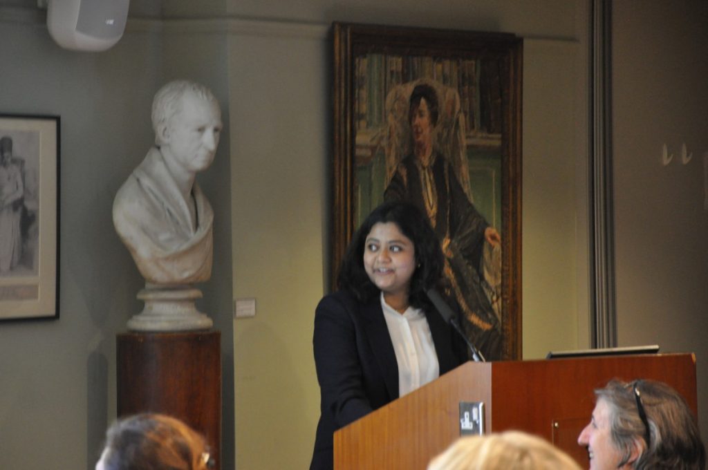 The presentations were followed by a reception at the Society where this year’s Bayly Prize winner, Mallika Leuzinger, was congratulated for her award.