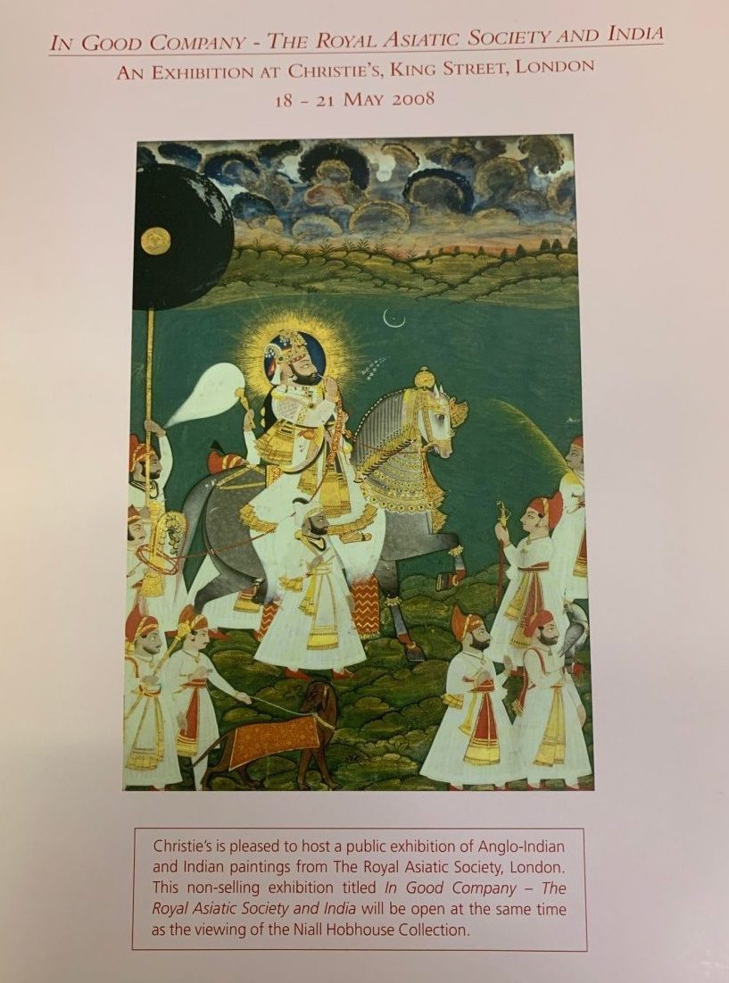 There are various types of articles, posters, programmes and other promotional material that illustrate the different ways in which the Society has promoted its collections over the years. This includes a programme advertising the ‘In Good Company – The Royal Asiatic Society and India’ exhibition which was held at Christie’s in 2008, an article from the Graphic newspaper in 1910 about the Society, and bookmarks illustrating the ‘Statue of Zhenwu the Dark Warrior’ and ‘Arrow Vase: from ritual to game’. These objects were both on loan to the Society from the Horniman Museum between 1st Sept-6 Dec 2016 and 14 Sept-14 Dec 2018.