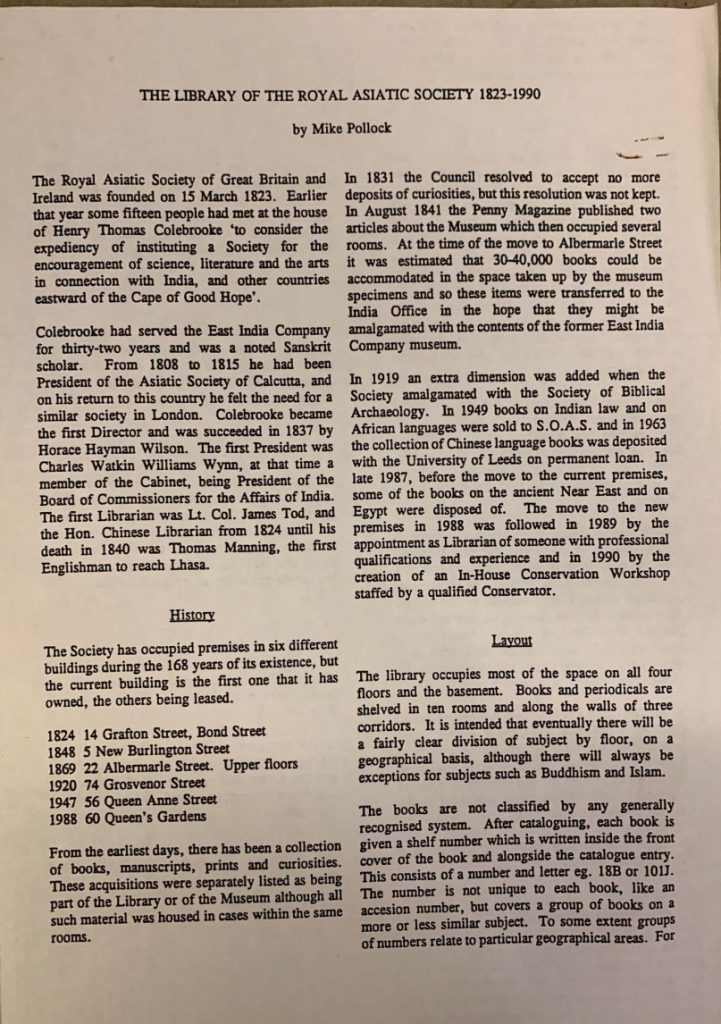 I have also come across a large section of collections and cataloguing lists that have been produced during the Society’s history. Before the introduction of an online cataloguing system, paper lists would have been important in helping to retrieve and document collections. In some cases, these are still used to help researchers who visit the Society today. Some highlights include: a list of books that were deposited with Lloyds Bank during the onset of WW2, old manuscript lists, a list of coins in the RAS cabinet by the Society’s former Librarian, Dr Oliver Codrington, and a list of paintings, drawings and photographs in the RAS Library.