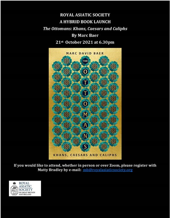 Please join us at 6:30pm on Thursday October 21st for the book launch of Professor Marc Baer’s ‘The Ottomans: Khans, Caesars and Caliphs’.