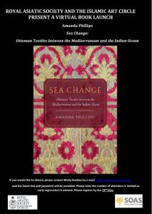 On Thursday 20th May at 6:30pm we will hold  a virtual book launch for Amanda Phillips’ Sea Change: Ottoman Textiles Between the Mediterranean and Indian Ocean.