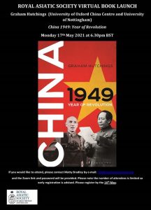 Please join us at 6:30 pm on Monday May 17th for a virtual book launch by Graham Hutchings (University of Oxford China Centre and University of Nottingham) entitled China 1949: Year of Revolution.