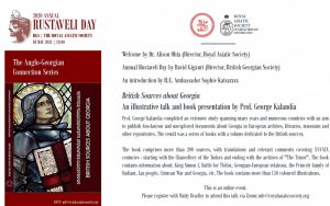 Please join The British Georgian Society and the RAS in a virtual celebration of Annual Rustaveli Day on May 3rd at 6pm (Uk time).