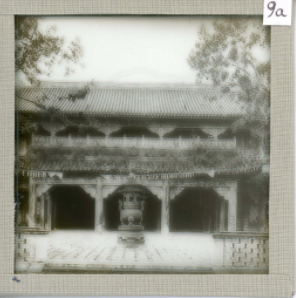 The labelling of each lantern slide also caught my attention as it indicated the ways in which photographs of different cultures are viewed and (mis)understood. Some of the images had been bound back to front flipping the Chinese characters captured in the photograph. The captions use an old-fashion system of romanisation for Mandarin instead of the modern system of pinyin. I also noted that while the collection is numbered from 1 to 199, there is a 9a and 9b which are both titled the ‘Temple of Heaven’ and thus labelled (a) and (b). Perhaps the original intention was to group these two photographs together.