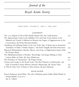 We are pleased to announce that the April issue of the Society’s journal is available for Fellows to view on Cambridge Core, with its print companion being received by subscribers at the end of last week. As you can see from the contents page below, there are eight individual articles on very different topics. However, some of the ideas elaborated show a link around historical translations, definitions, representations and misrepresentations.