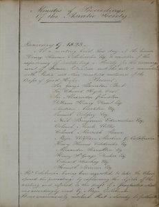It would be Colebrooke that arranged a preliminary meeting at his house on the 8th January 1823, the purpose of which was to ‘consider the expediency of instituting a Society for the encouragement of science, literature and the arts in connection with India, and other countries eastward of the Cape of Good Hope.’ Fifteen people attended this meeting with a list of these highlighted in the proceedings below. They include the Society’s Vice-Presidents, Sir Alexander Johnston and Sir George Thomas Staunton.