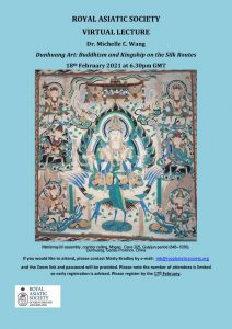 The Society is pleased to announce that Dr. Michelle C. Wang from the Department of Art and Art History at Georgetown University, will be joining us for a virtual lecture on, Dunhuang Art: Buddhism and Kingship on the Silk Routes. This will be held on Thursday 18th February at 6:30pm.