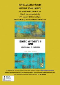 As highlighted in the previous blog post, we have the book launch on the 29th January of the publication, ‘Islamic Movements in India’ by Dr. Arndt Emmerich. This book analyses the emerging trend of Muslim-minority politics in India and suggests that a fundamental shift has occurred over the last 20 years from an identity-dominated, inward looking approach by Muslim community leaders, Islamic authorities and social activists towards an inclusive debate centred on socio-economic marginalisation and minority empowerment.