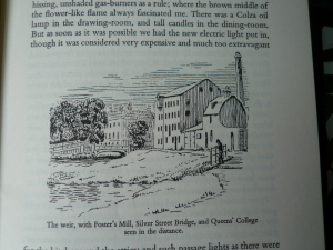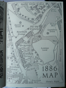 However, I’m now certain that the stock did not go to the Newnham College Boathouse – the College was allowed to share the Jesus College boathouse, which is miles away where the river has swung east, and the left bank, where all the boathouses are, is only accessible from Chesterton. But I think I’ve found enough extra evidence to satisfy myself that my original hunch is correct – the storage would have been near the then Press Printing House (of Cambridge University Press) in the Mill Lane/Silver Street area at the location of the Mill Pool, which used to be a major industrial and commercial area of the town, with coal and grain the main commodities traded there, and paper could come in and printed sheets go out, by barges, for the University Press. Until 1928 there was an active flour mill, which then moved to near the station, and just a little upstream lay the Newnham Mill, and beyond that the Grantchester Mill. All this then developed in the 20th century as picturesque tourist trade.
