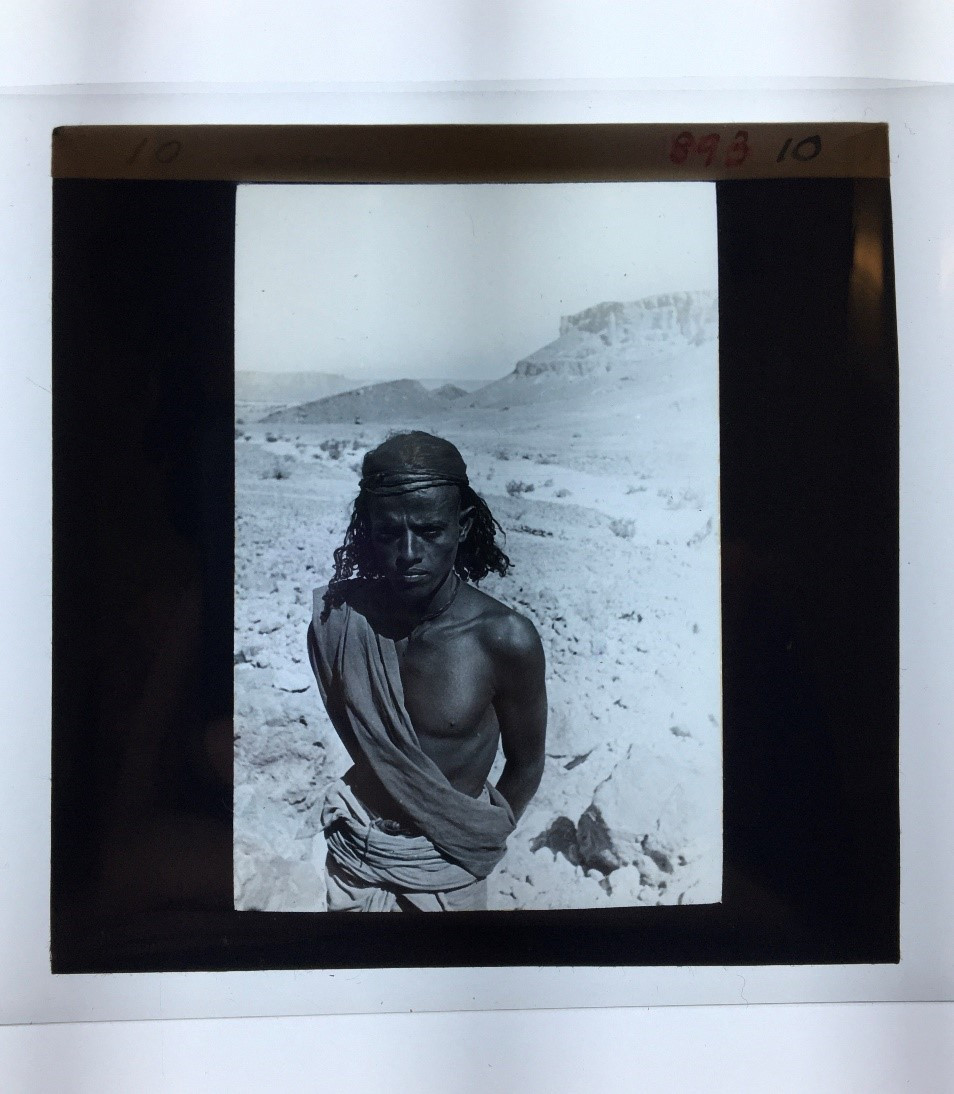 Although the Royal Asiatic Society’s collection of Stark’s photographs include important topographical scenes and ancient inscriptions on the walls of great ruins, Stark’s compositions of the locals who aided her journey across the Hadhramaut are particularly insightful. These sensitive portraits capture individuals across Arabian society with equal attention. From camel-men to royalty in ‘Azzan, these photographic slides are the result of her choice to fully embrace custom and live alongside locals. A selection of images that tell the story of the locals had been selected from the archive to be exhibited during the Collections Open Evening on the 17th of March. However due to the Corona Virus Pandemic, the evening was cancelled to be hopefully rescheduled at a later date. The images from left to right and top to bottom were captioned as the following: