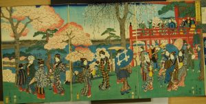 These thoughts bring to mind the Japanese concertina album (Head cat. 077.001), in the RAS collection, of 200 Japanese ukiyo-e from the 1850s in which 3 of the prints depict scenes of cherry blossom viewing in Japan.