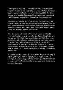 And, of course, the Society is not just about the Collections. Last week the opening of the Bayly Prize for 2020 was announced with a deadline for application on 17 April 2020. This week we would like to announce the forthcoming Silk Road Course for 2020.