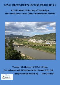 On Tuesday 21 January, also at 6.30 pm, we welcome Dr Edward Pulford from the University of Cambridge. His theme is also China, but in a different context. His lecture is entitled, “Time and History across China’s Northeastern Borders”.