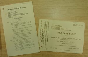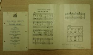 The China Society existed in London in the 1930s. I haven’t been able to find out much about its history, but within our collections are some papers connected with the China Society, consisting predominantly of correspondence with Henry Thomas Silcock concerning the administration of the Society in 1931. The China Society held a Dinner on the 11th June 1931 at the Trocadero Restaurant, London, and the collection include a menu card for the Dinner and a printed copy of the then Chinese National Anthem.