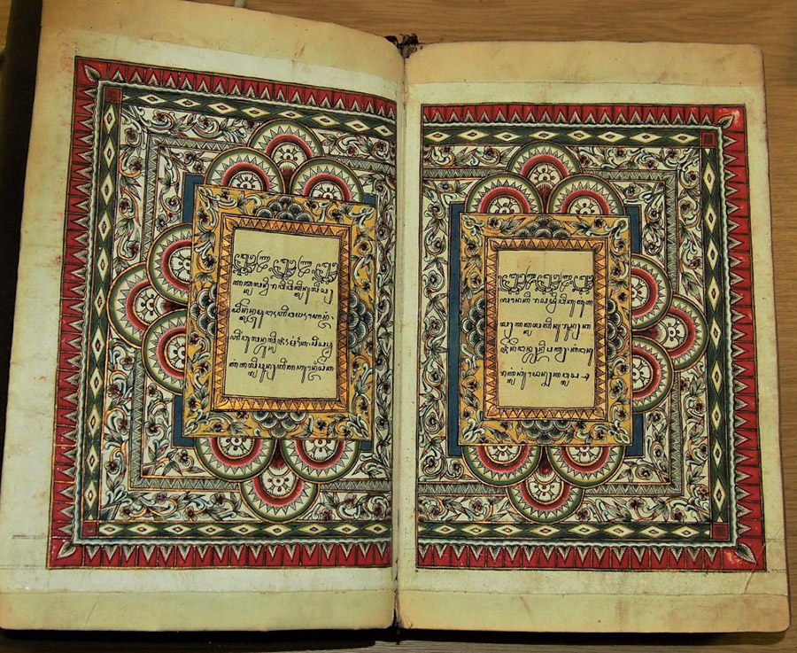 Last week, I was fortunate to be able to attend the opening of the British Museum exhibition, “Sir Stamford Raffles: collecting in Southeast Asia, 1811-1824”. This new exhibition highlights a number of objects from Java and Sumatra collected by Sir Stamford Raffles (1781-1826), who is chiefly known today as the founder of the state of Singapore. We are delighted that one of our manuscripts (RAS Raffles Java 7) is featured in the exhibition. The manuscript features beautifully decorated initial pages, and is one of 124 Malay and Javanese manuscripts donated to the Royal Asiatic Society in 1830 by his second wife, Sophia, Lady Raffles (1786-1858). The Raffles family donated most of his collection to the British Museum in 1859 and 1939.