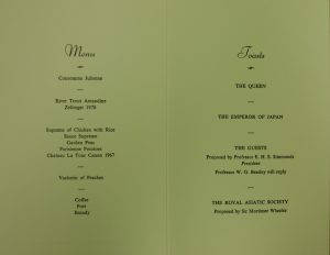 But as is the way when working with archives, a set of papers I have recently catalogued also features Stuart Simmonds. In 1973, the Royal Asiatic Society celebrated its 150th anniversary and the catalogue for this material is now available on Archives Hub. During much of the preparation time Basil Robinson, Keeper at the Victoria & Albert Museum, was President of the Society. But in 1973 the presidency passed to Stuart Simmonds and so he presided over the many events that constituted the Society’s celebrations. A quick look at the catalogue will give you an idea of the breadth of the events. These included: