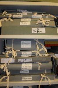 We are pleased to announce that a three year project of caring and cataloguing our photographs has been completed. Nearly all the photographs within our Collections have been appropriately packaged and catalogued (except for two specific collections we are saving for individual intern/volunteer projects). The project began in 2016 when Ruby Rees-Sheridan, our first placement student from the University of Sussex MA in Art History and Museum Curating, undertook an audit of our photograph collections and began the process of making sure they were housed in photographic quality material with bespoke boxes to prevent shift of photographs when they are removed from the shelves. Since Ruby, we have had two further students from Sussex, Carly Bishop in 2017 and Laura Morris-Kingham in 2018, who have both continued with the project alongside some volunteers helping and both Edward Weech, the Librarian, and myself, as Archivist, working together to ensure the completion of this project. Last month the last few small collections were packaged and catalogued by Edward and myself and placed with the others in the strong room. All those who have worked on the project have had to learn how to clean photographic mounts, make four-flap folders and bespoke individual boxes, as well as how to write appropriate descriptions for the catalogue.