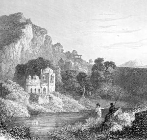 Before bringing this instalment of my blog to a conclusion, let me say a few words about Tod’s ‘bungalow’ at Dabok, Tod’s destination in the above painting. Although Tod initially made his residence in the gardens of Rampyari in the city of Udaipur, in 1819 he began to chalk out a new Residency for himself in the hills above the city, some 12 miles distant. He conceived this bungalow as a type ‘country seat’ idyll, complete with extensive botanic and kitchen gardens, including orchards on-site, and facilities for sporting pursuits, such as fishing, sailing and shooting, nearby.