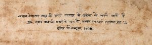 My dating of this journey to Dabok (9 October 1821) requires some explanation. Below I include a reproduction of the inscription, a transliteration, and a translation. The last numeral of the inscription on ln. 3 is obscured and below it has been written 1822. This is probably because the Vikram Samvat year has been rendered as 1879. This V.S. date, however, is most likely a scribal error and should read 1878. I have consulted my panchanga and I notice that V.S. 1878 Ashvin Shuklapaksha 13 corresponds to 9 October 1821. By contrast V.S. 1879 Ashvin Shuklapaksha 13 corresponds with 29 September 1822. Given the scribe has rendered the tarikh date as 9 October, I strongly suspect the year should then be C.E. 1821/V.S. 1878. This reading of the date is further supported by the fact that Tod left Mewar for Gujarat (never to return) in June 1822. We know from his Travels in Western India that he was residing in Baroda throughout October 1822.